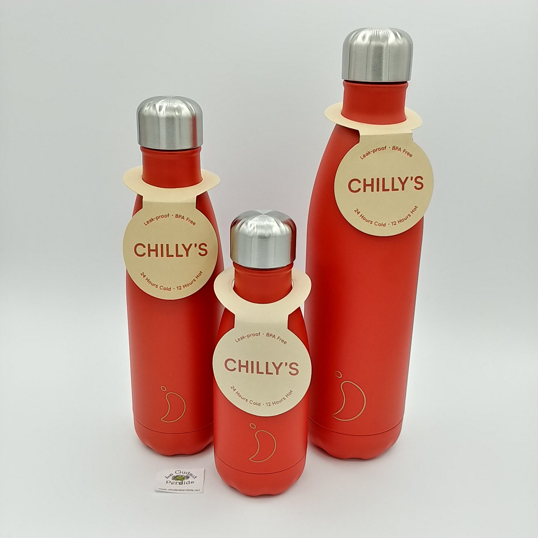 - Las botellas isotérmicas Chilly’s, por su aislamiento doble de pared al vacío, mantiene 12 horas el líquido caliente y 24 horas frío. Parece increíble pero es la únicas de sus características que aguanta tanto.