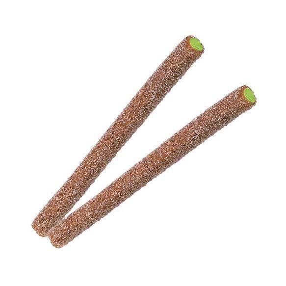 Adictivo regaliz de golosina de intenso sabor a cola, relleno y con cobertura de polvos pica pica.