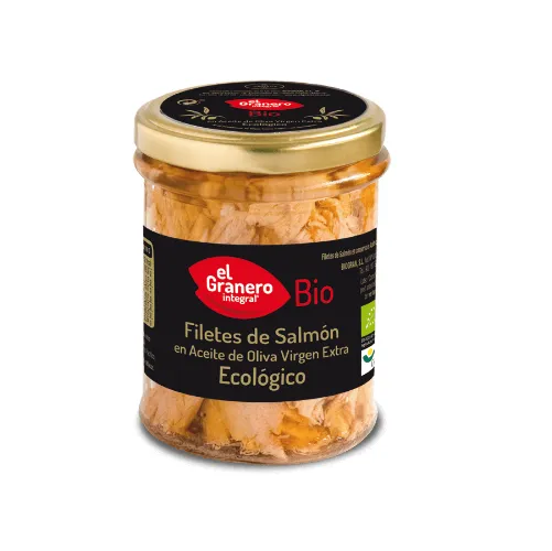 Sé el primero en valorar “Filetes de Salmón en Aceite de Oliva Bio El Granero Integral, 195 gr”