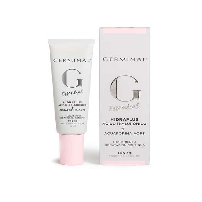 Germinal Hidraplus Crema está diseñada para la hidratación contínua de todo tipo de pieles destacando dos activos fundamentales el ácido hialurónico y la acuaporina patentada AQP3.