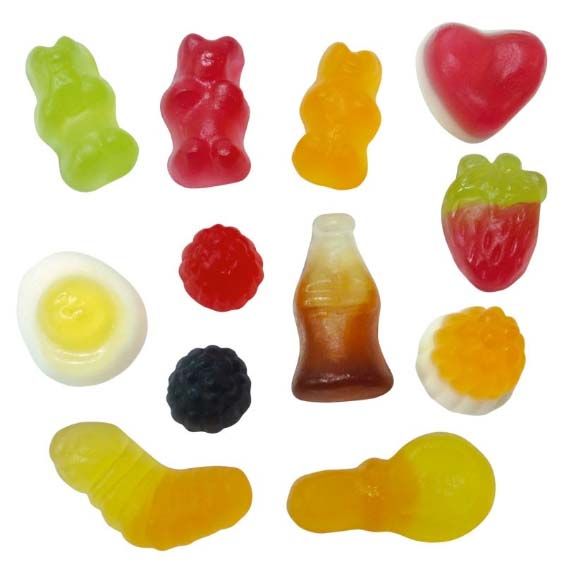 Delicioso surtido de gomitas en tamaño mini. Disfruta de fresas, osos, moras, botellas, huevos fritos…