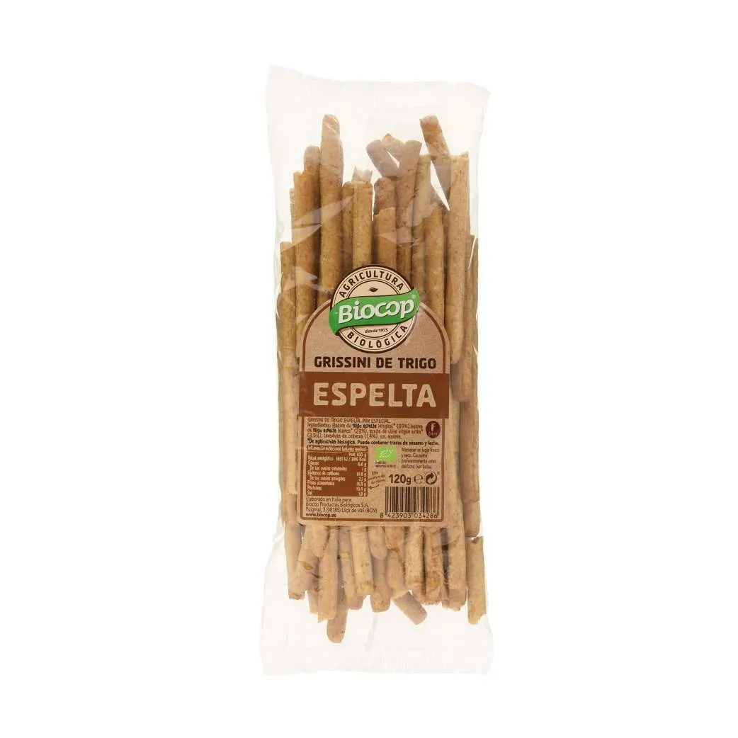 Grissini de trigo espelta. Pan especial. Crujientes, ligeros y finos. Con aceite de oliva virgen extra. Alto contenido de fibra. Punto de horneado ideal. Combinan tanto en dulce como en salado.