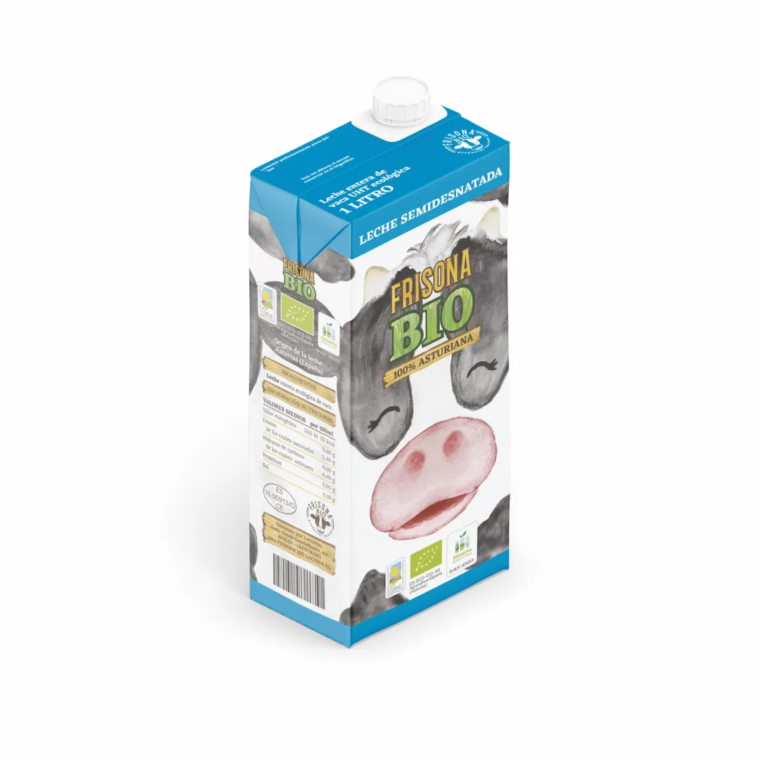 Leche ecológica semidesnatada sometida a tratamiento UHT y envasado aséptico.