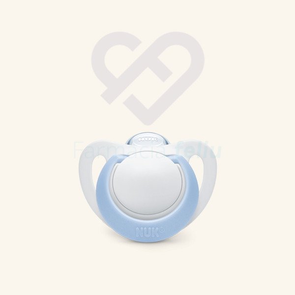 Su diseño consigue reducir la presión en la mandíbula y el riesgo de que los dientes crezcan torcidos (oclusión dental). La tetina de silicona aplanada y con forma anatómica exclusiva imita el pezón y deja a la lengua del bebé espacio suficiente para reproducir los movimientos de succión naturales. El Chupete Genius Silicona NUK ha sido diseñado bajo la supervisión de especialistas y permite que el bebé entrene su mandíbula y pueda alcanzar una interacción funcional del paladar, lengua, labios y dientes desde el nacimiento, paso previo para el desarrollo de la ingestión, la respiración y el habla. Precauciones y Advertencias de NUK Chupete Genius 0-2 Silicona