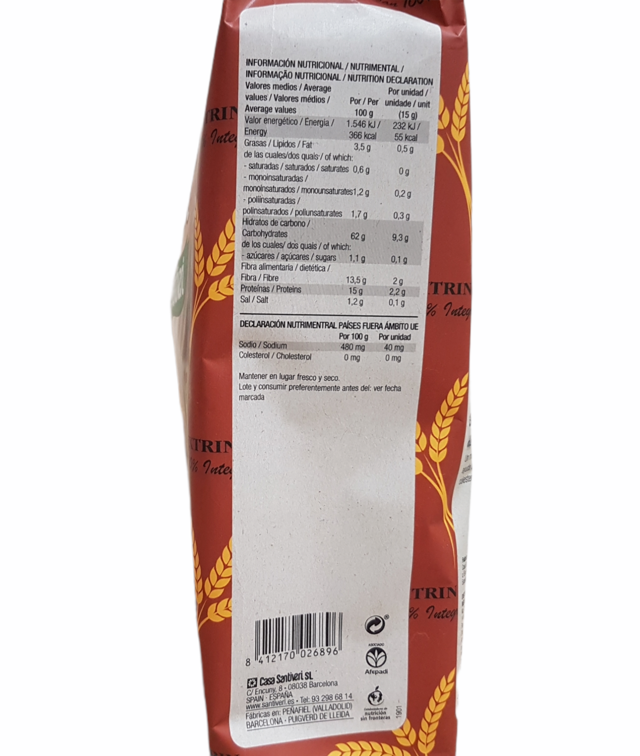 Denominación legal: Pan 100% Integral Dextrin Tradicional Santiveri