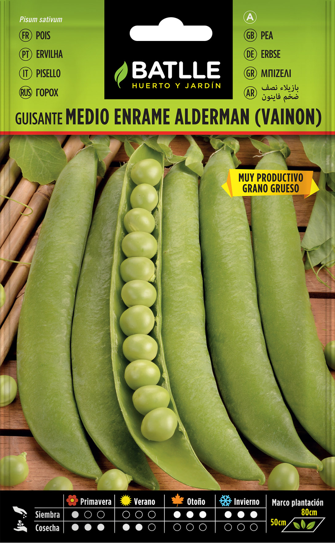 Alcanza una altura de 80 – 90 cm. Vainas prácticamente rectas de 13 cm de longitud con 10 -11 granos muy gruesos y rugosos.