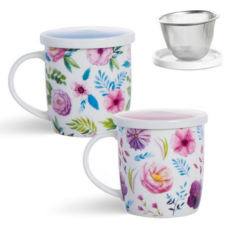 Preciosa taza de porcelana con filtro de metal y tapa para disfrutar de tu infusión. Ideal para regalar.