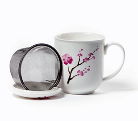 Taza para infusión «Cherry blossom». Porcelana con filtro y tapa. 0,38l