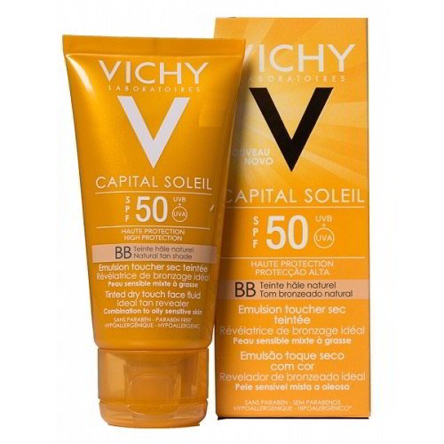 Vichy BB Cream Tacto Seco 14 50ml acabado seco SPF50 conseguirás un tono de bronceado natural, además de proteger la piel e hidratarla 24 horas.